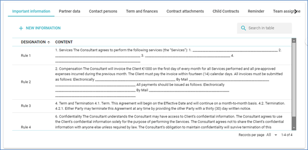 In this section, you can add information to a contract that you consider to be particularly important. Usually, these will be passages from the contract that deserve your attention.
