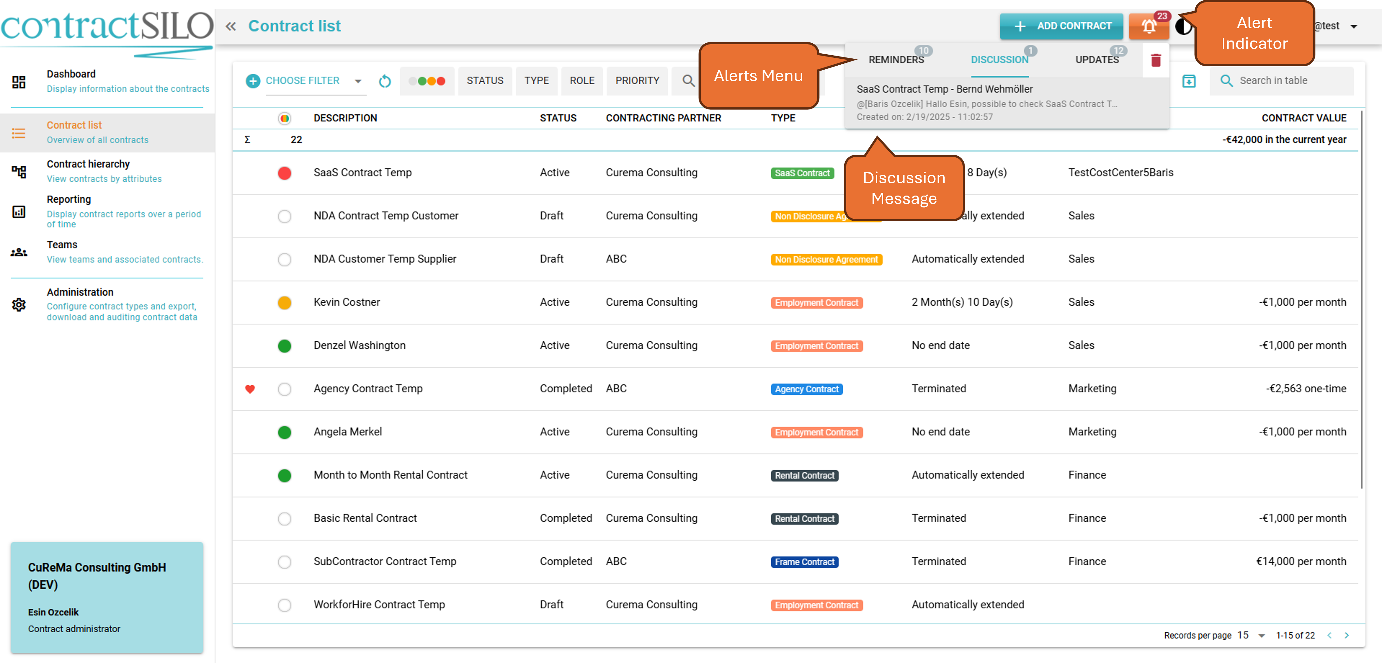 Reminders for contracts, new discussion posts on contracts, and changed contracts will also be displayed in the toolbar.