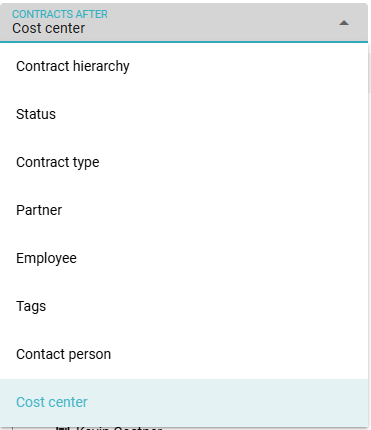 Contracts can be displayed in this view based on various criteria. Click on the CONTRACTS AFTER field and select a criterion from the list. The contracts will then be reloaded and displayed accordingly.