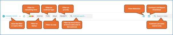 Contracts can be narrowed down based on their status. Select a status to show or hide contracts with the selected status.